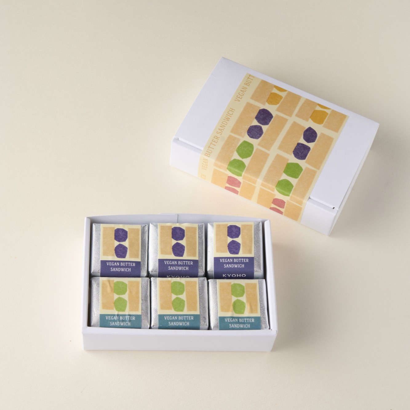 ころんとした愛らしいフォルムのバターサンドの断面をデザインしたパッケージが美味しさを引き立てます。