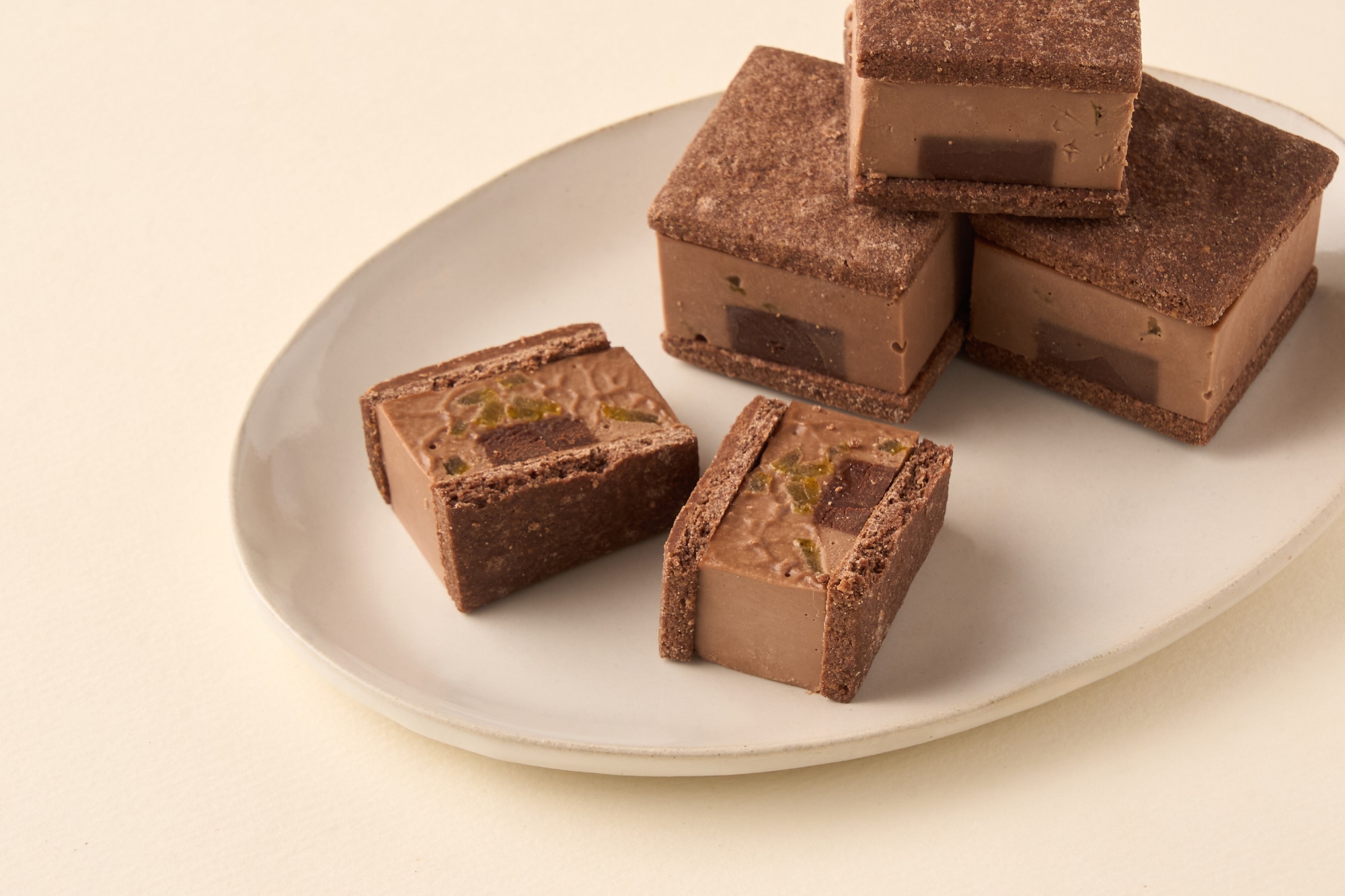 豊潤なヴィーガンバタークリームと滑らかで濃厚な生チョコレートに、薫り高い柚子がアクセント。チョコレートと柚子の絶妙なハーモニーをお楽しみください。