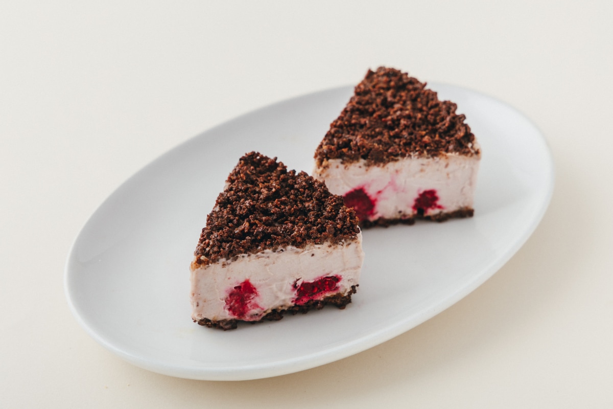 カカオのほろ苦さと甘酸っぱいベリーが重なり合う、ヴィーガンチーズケーキです。