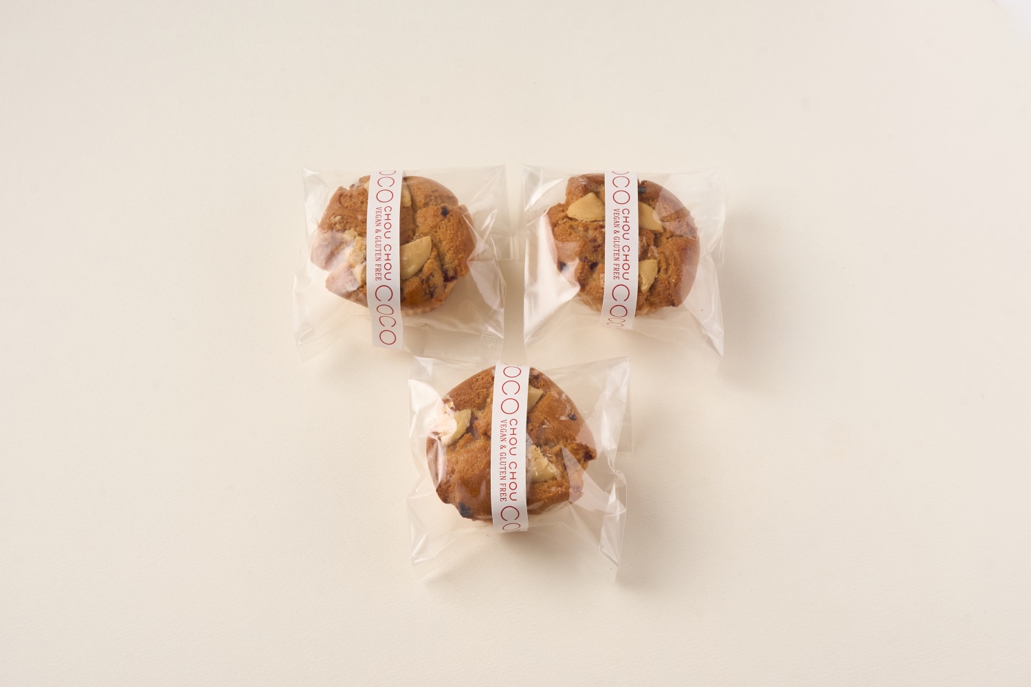 しっとりとした米粉の生地に、甘酸っぱいラズベリーと、乳製品不使用で仕立てたヴィーガンホワイトチョコレートを合わせました。